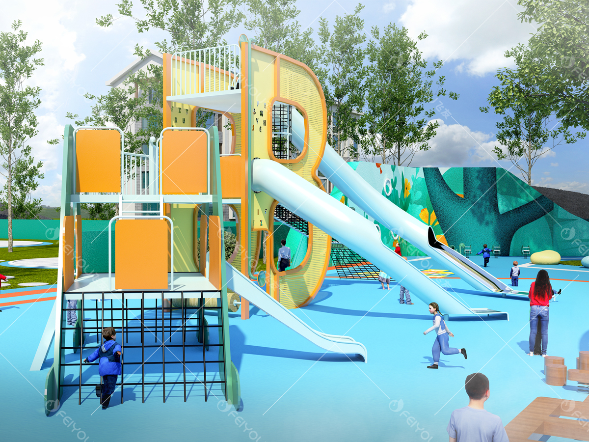 主體設施是兩座相連的仙人掌構架,內(nèi)部有垂直爬網(wǎng),滑梯等游戲設施;場地中有仙人掌形狀的秋千,蹺蹺板,還有可愛的仙人掌小花點綴其間...more