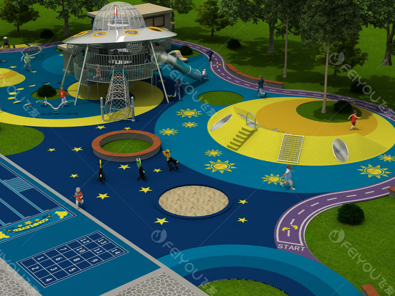 本設計以“UFO”造型鉆網(wǎng)為中心,輔以滑滑梯、秋千、蹦床、微地形,培養(yǎng)幼兒鉆、爬、滑、晃等能力,為幼兒打造全方位的游戲體驗more