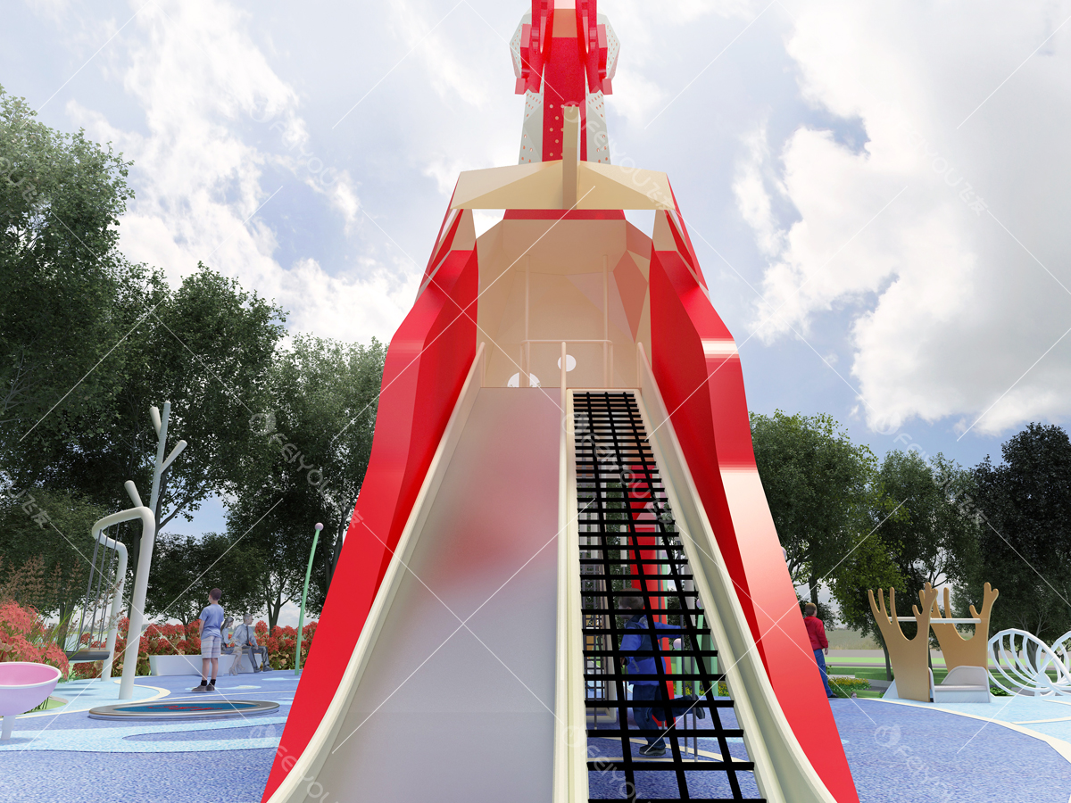 鹿主題IP樂(lè)園,是根據(jù)業(yè)主要求,將公司的企業(yè)文化和主題IP形象相結(jié)合,打造出具有雕塑展示功能的兒童樂(lè)園,高度達(dá)到11.6米,在游戲空間里我們?cè)O(shè)計(jì)師處處考慮到材料的屬性、安全尺度和規(guī)范,希望既能滿足地產(chǎn)營(yíng)銷宣傳的作用,同時(shí)也能為當(dāng)?shù)貎和瘞g樂(lè),把夢(mèng)里的書里的情景帶到現(xiàn)實(shí),帶到身邊,讓小鹿伴隨我們成長(zhǎng)。