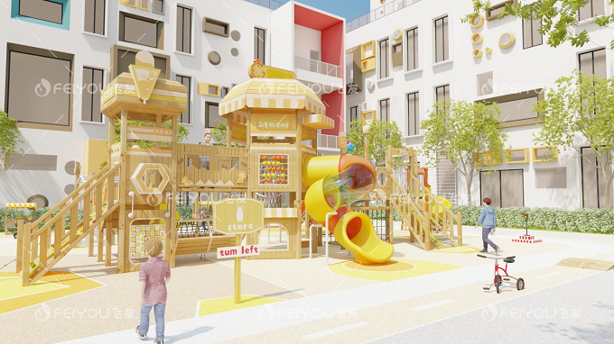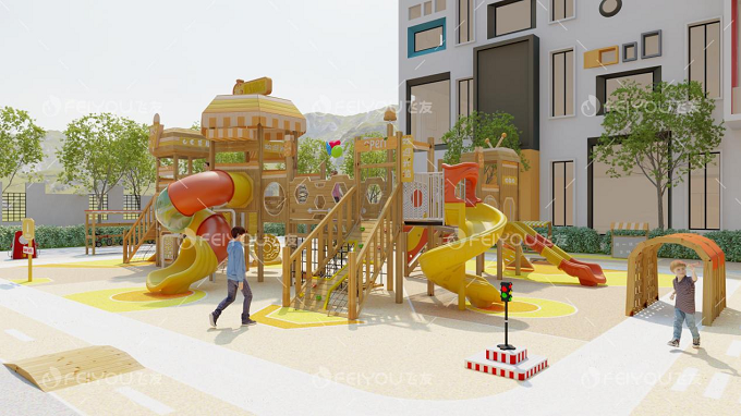 由于木制滑梯的主體構(gòu)筑材料為木材,整體風(fēng)格給人感覺更加精致,更具有異國(guó)風(fēng)情的格調(diào),獨(dú)特的造型更是吸引了很多的孩子。在許多高端的幼兒園和小區(qū)都能看到木制滑梯的身影,可以說木制滑梯除了滿足孩子們的游樂嬉戲與學(xué)習(xí)鍛煉膽識(shí)之外,更加添上了一層審美的色彩。這也可以從側(cè)面反映出隨著經(jīng)濟(jì)水平的不斷提高,人們對(duì)于孩子的重視程度越來越大,游戲設(shè)備僅滿足使用需要已經(jīng)不足以滿足市場(chǎng)的需求了,各大廠商還必須在審美上下一番功夫。而且現(xiàn)在市面上很多木制滑梯生產(chǎn)商推出了不同造型的木制滑梯定制服務(wù),針對(duì)幼兒園、小區(qū)、公園等不同環(huán)境可以量身定制出不同造型的木制滑梯,使之完美的融入周邊的環(huán)境中,甚至成為別具特色的標(biāo)志。