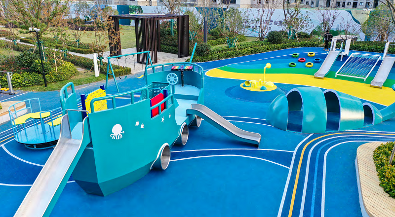 此外,小區(qū)內(nèi)的游樂設(shè)備還能夠促進(jìn)孩子們的身心健康發(fā)展。在戶外玩耍,孩子們能夠接觸到陽(yáng)光和新鮮空氣,有助于維生素 D 的合成,增強(qiáng)免疫力。同時(shí),通過各種游樂活動(dòng),孩子們能夠消耗過剩的精力,提高睡眠質(zhì)量,促進(jìn)身體的生長(zhǎng)發(fā)育。在心理方面,玩耍能夠減輕孩子們的學(xué)習(xí)壓力,讓他們?cè)谳p松愉快的氛圍中釋放情緒,培養(yǎng)積極樂觀的心態(tài)。