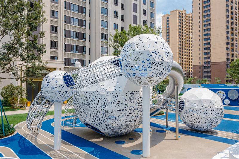 金屬材質(zhì)也是常見(jiàn)的選擇之一。常見(jiàn)的有不銹鋼和鋁合金。不銹鋼滑梯具有堅(jiān)固耐用、穩(wěn)定性強(qiáng)的優(yōu)點(diǎn)。它能夠承受較大的重量和壓力,適合在公共場(chǎng)所使用。不銹鋼的表面光滑,易于清潔和維護(hù)。鋁合金材質(zhì)則相對(duì)較輕,同時(shí)也具有較好的強(qiáng)度和耐腐蝕性。金屬滑梯在設(shè)計(jì)上可以有更多的創(chuàng)意和變化,能夠打造出獨(dú)特的造型。然而,金屬滑梯在夏季可能會(huì)因?yàn)樘?yáng)暴曬而變得很熱,容易燙傷孩子,所以需要采取一些防曬措施。