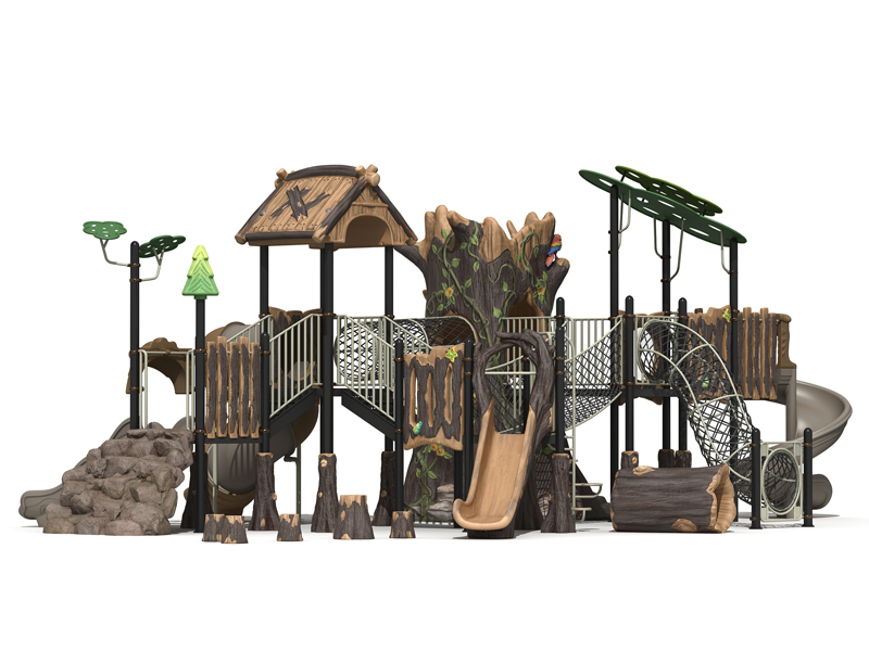 關(guān)鍵點(diǎn)6:適配場(chǎng)地大小與地形特點(diǎn) 選購(gòu)前需精準(zhǔn)測(cè)量場(chǎng)地尺寸,預(yù)留至少1.5米的安全緩沖距離。若場(chǎng)地狹窄,可選擇“垂直疊加”的組合式設(shè)計(jì),利用縱向空間節(jié)省占地;若場(chǎng)地有坡度,可結(jié)合地形設(shè)計(jì)錯(cuò)落式滑梯,既能適配場(chǎng)地,又能增加游戲趣味性。
