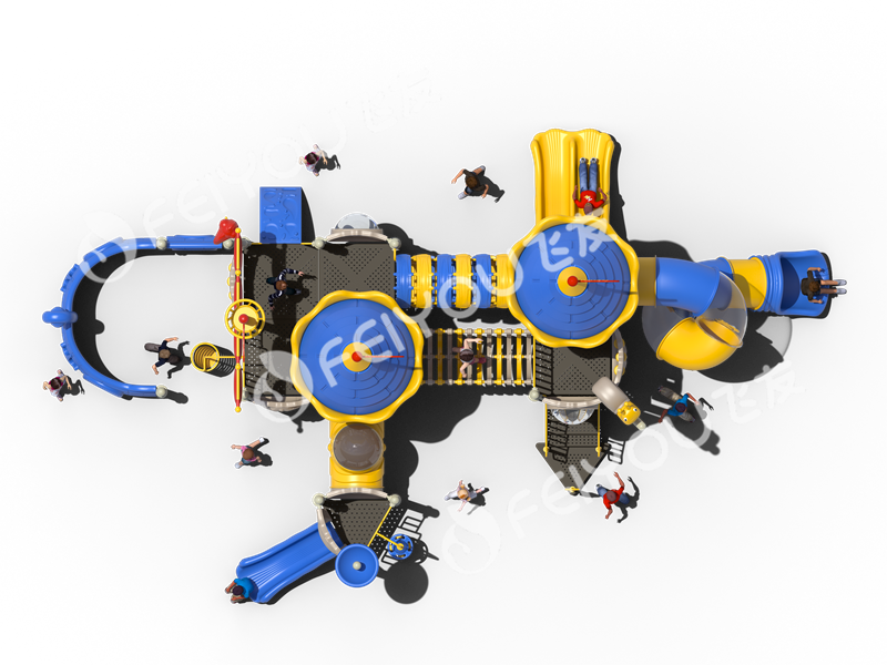 在風(fēng)起云涌的加勒比海域,有一群尚義任俠的勇士們,反抗殖民權(quán)貴,解救貧苦百姓。他們憑借堅(jiān)韌的毅力或卓越的航海技術(shù)航行在汪洋大海之中,尋找傳說中遠(yuǎn)在世界盡頭的寶藏。飛友經(jīng)典海盜船系列組合滑梯由盜船、滑梯、桅桿、繩索等部件組成,設(shè)計(jì)源于海盜船故事情節(jié)。孩子們無畏搏擊驚濤駭浪,在汪洋大海中乘風(fēng)破浪,體驗(yàn)征服大海帶來的成功喜悅!