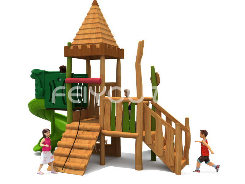 FY280-02社區(qū)少兒實(shí)木組合滑梯-幼兒園小朋友木制游樂(lè)設(shè)施